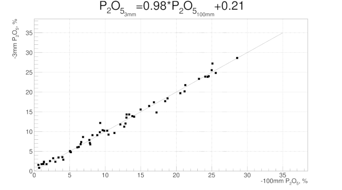 В рамках программы ОПЭ был выполнен большой цикл измерений проб апатит-нефелиновой руды, создана градуировочная коллекция в количестве 69 образцов. Определена градуировочная зависимость.